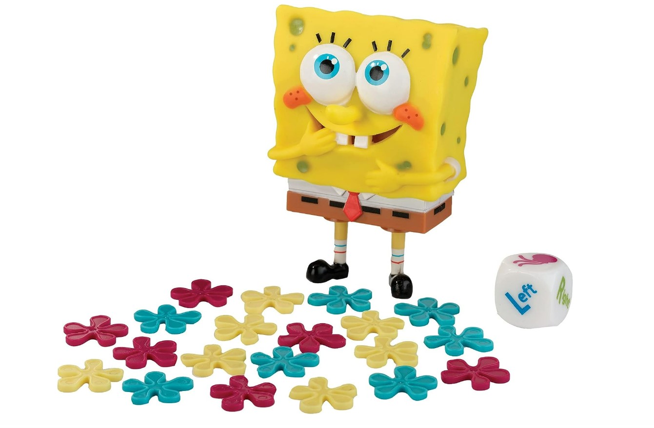 Lanza el dado y pásalo rápidamente: los jugadores se sientan en un círculo, o alrededor de una mesa, y se turnan para rodar el dado para averiguar que camino pasar Bob Esponja.