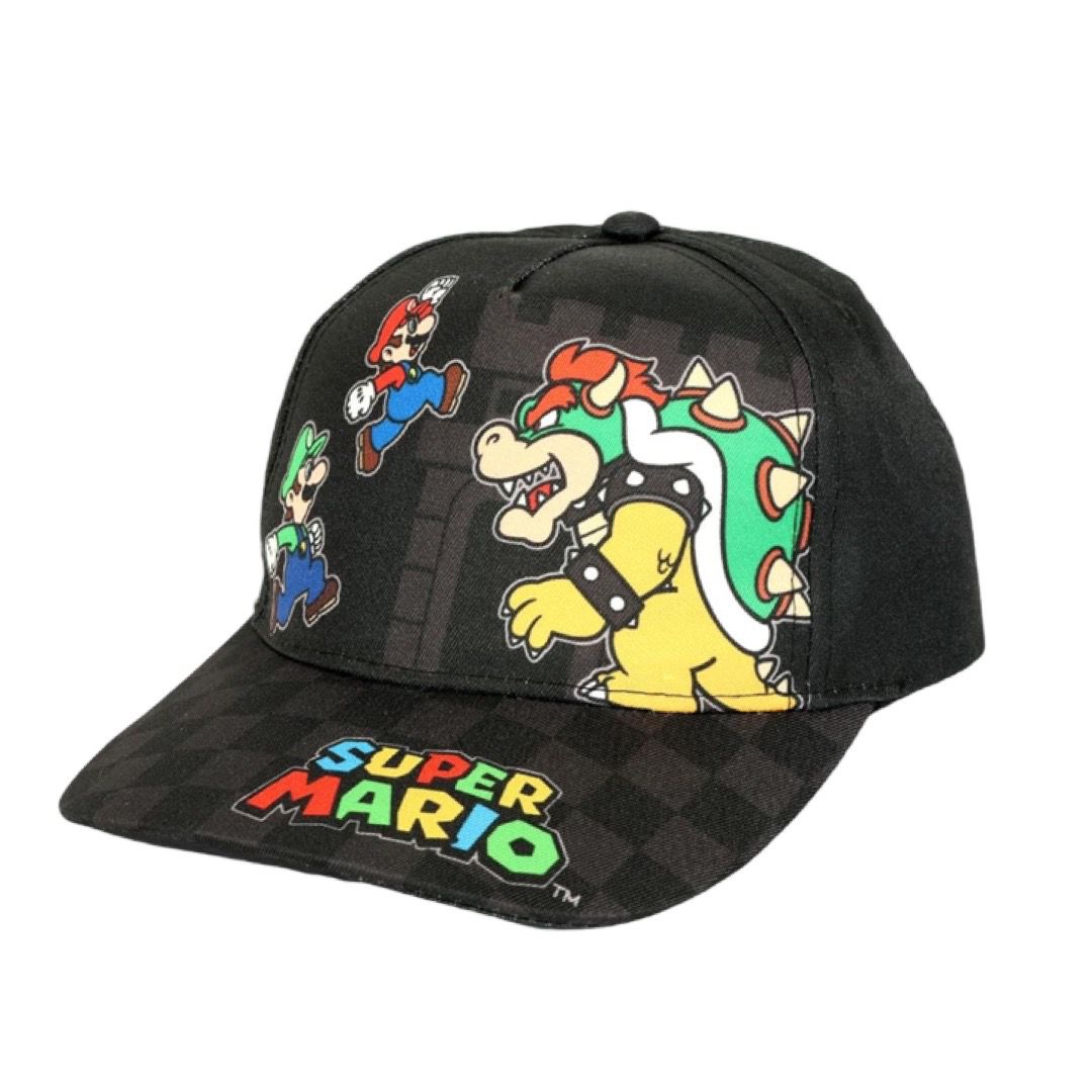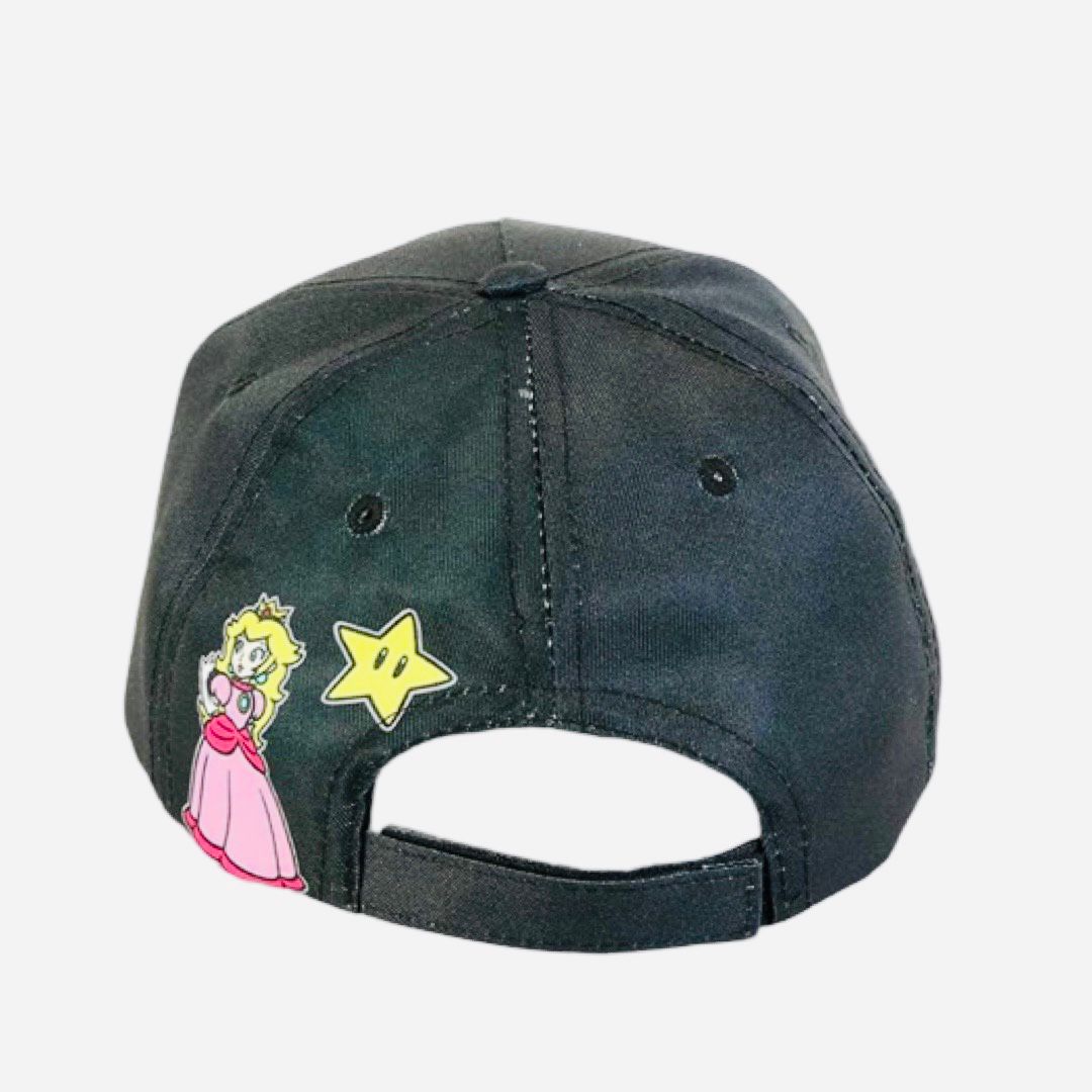 Gorra Mario Bros color negro con visera normal y cincho ajustable