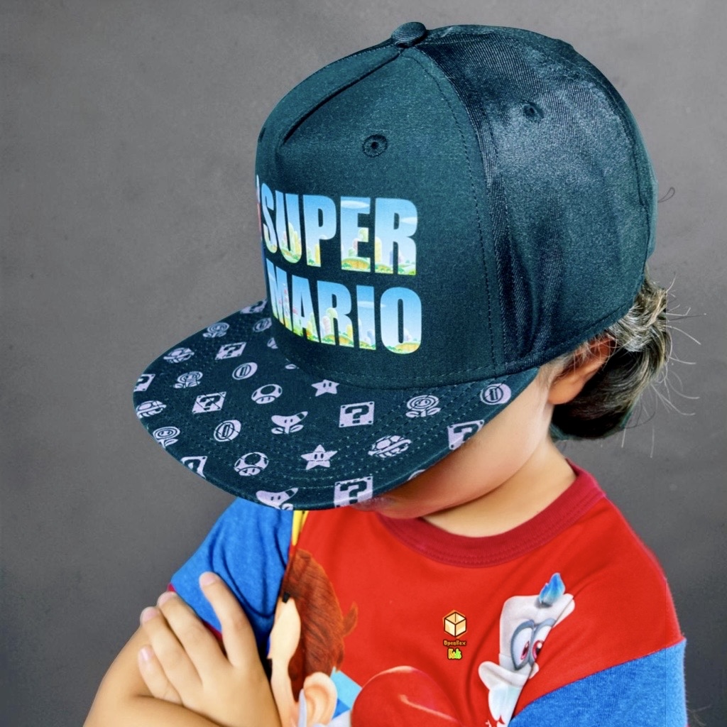 Gorra Super Mario color negro con visera plana y cincho ajustable