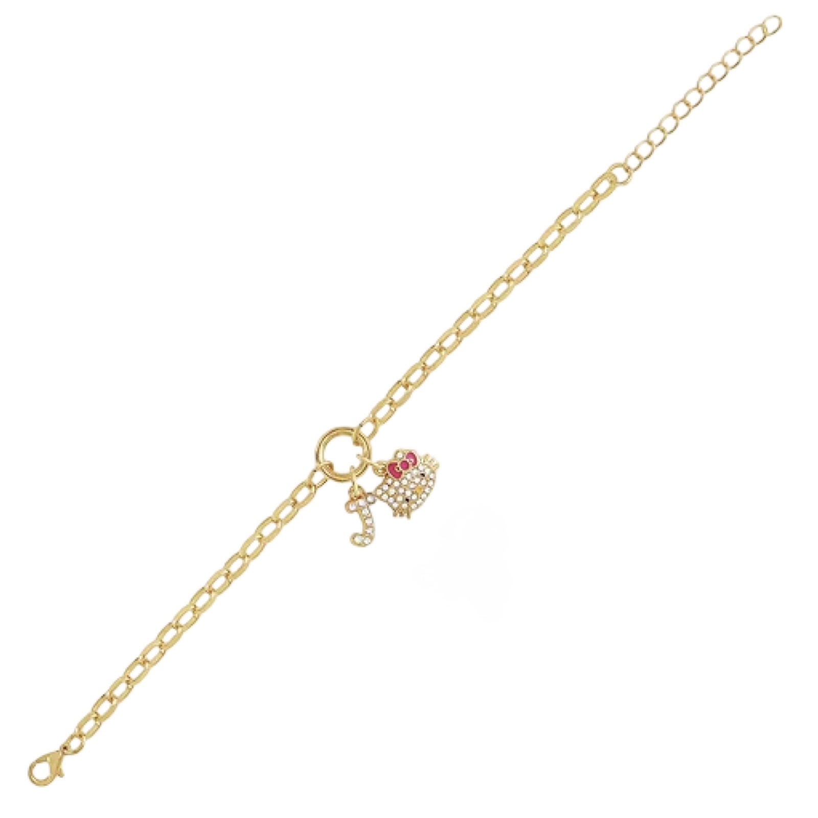 / Hello Kitty Pulsera en tono dorado con doble dije