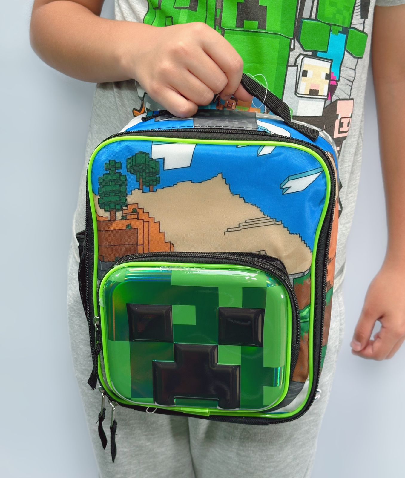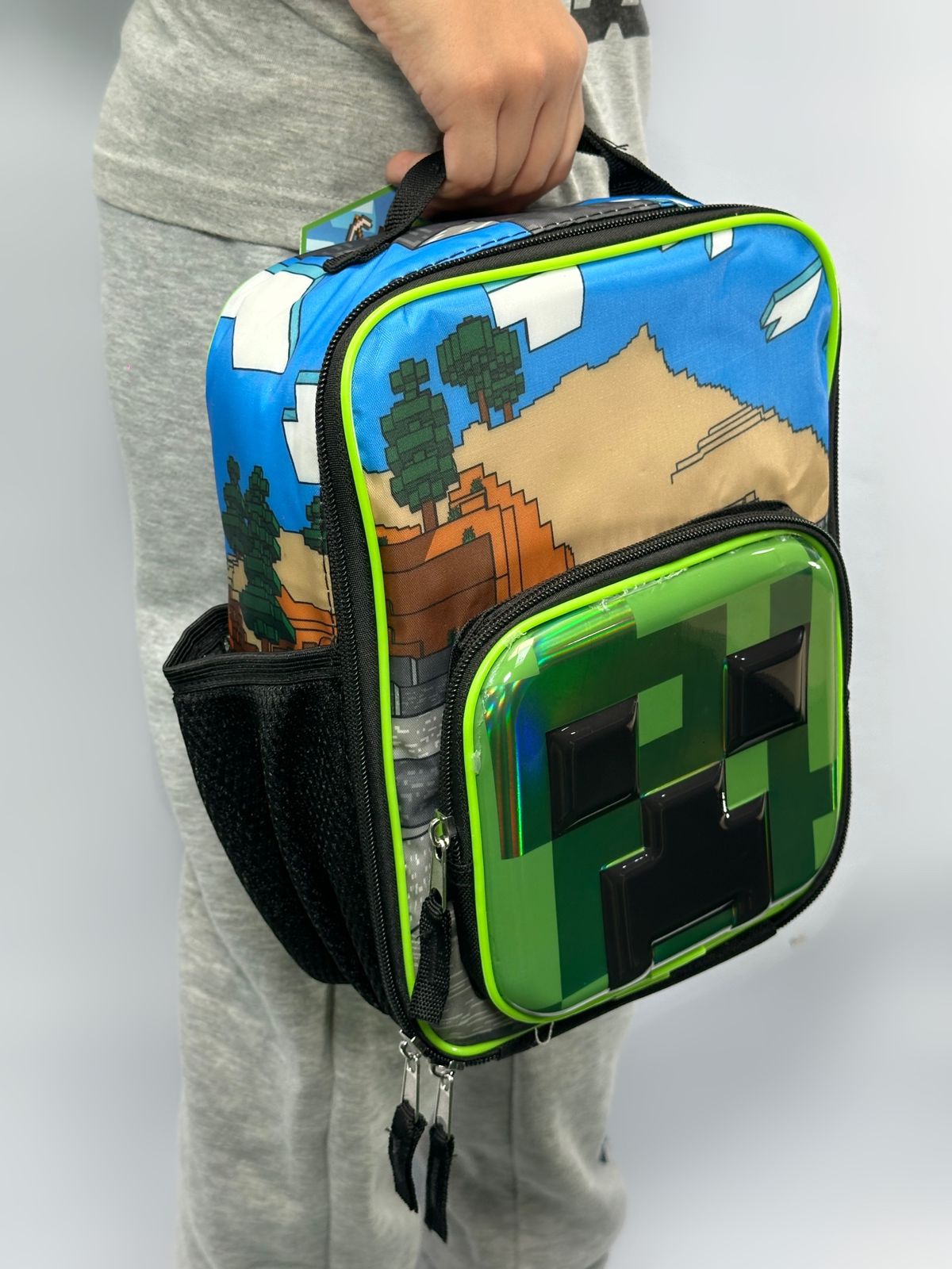 Minecraft Lonchera Creeper de un solo compartimiento y portabotellas