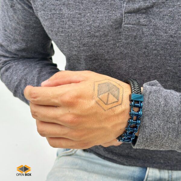 Color: Negro con azul Material: Acero inoxidable con cuerina Medidas: Largo 23cms / Ancho 1.5cm