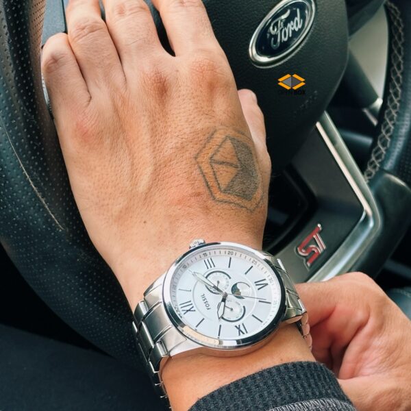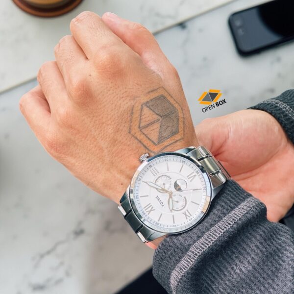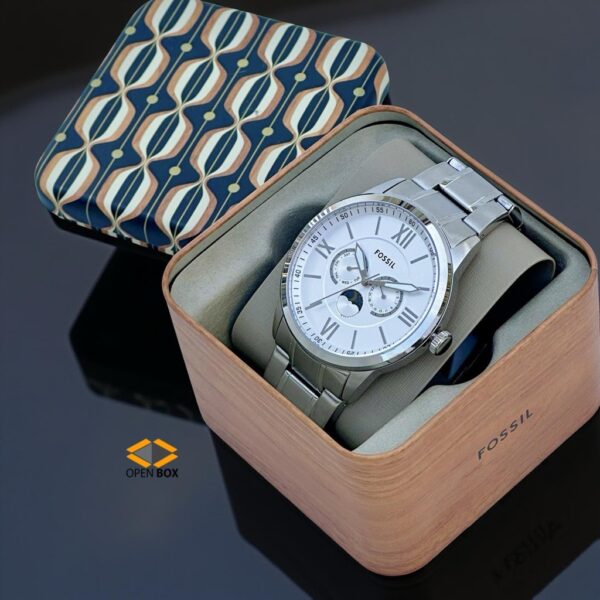 Set de Pareja Fossil Bannon reloj multifuncion de acero inoxidable en tono plateado para el y para ella BQ2753SET
