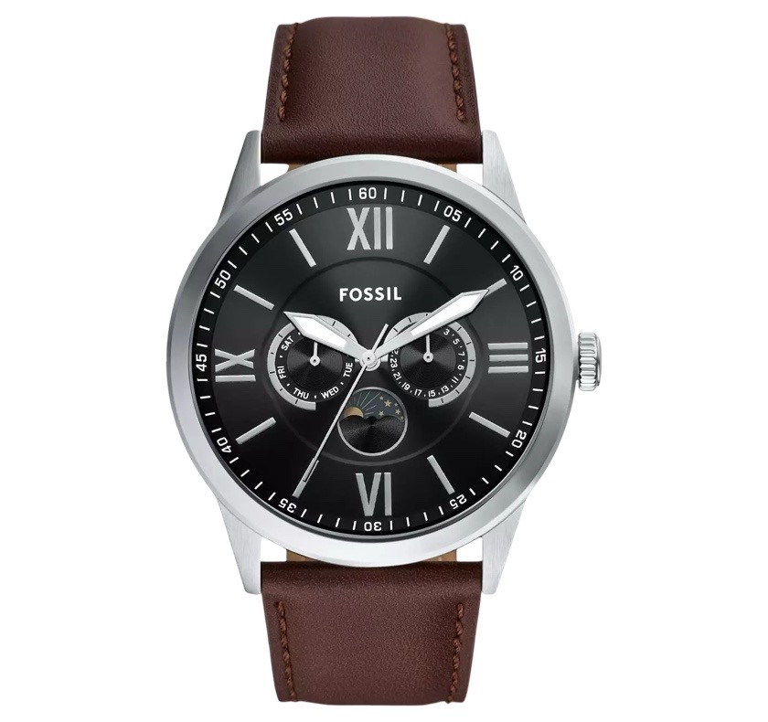Reloj Fossil Flynn multifunción de cuero tono café BQM7086