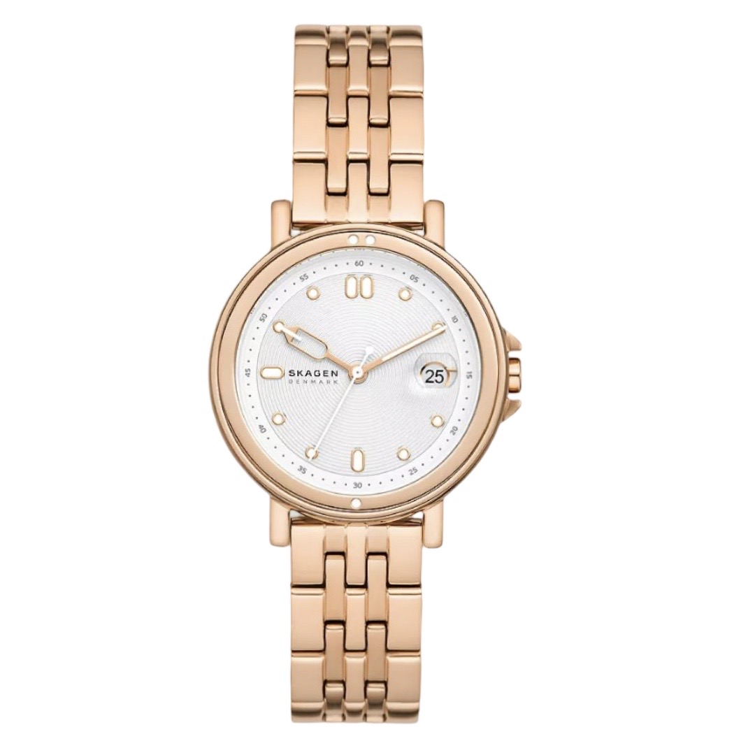 Reloj Skagen Signatur Lille Sport de pulsera de acero inoxidable en tono oro rosa con fecha y tres manecillas SKW3136