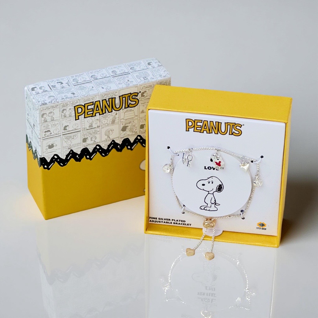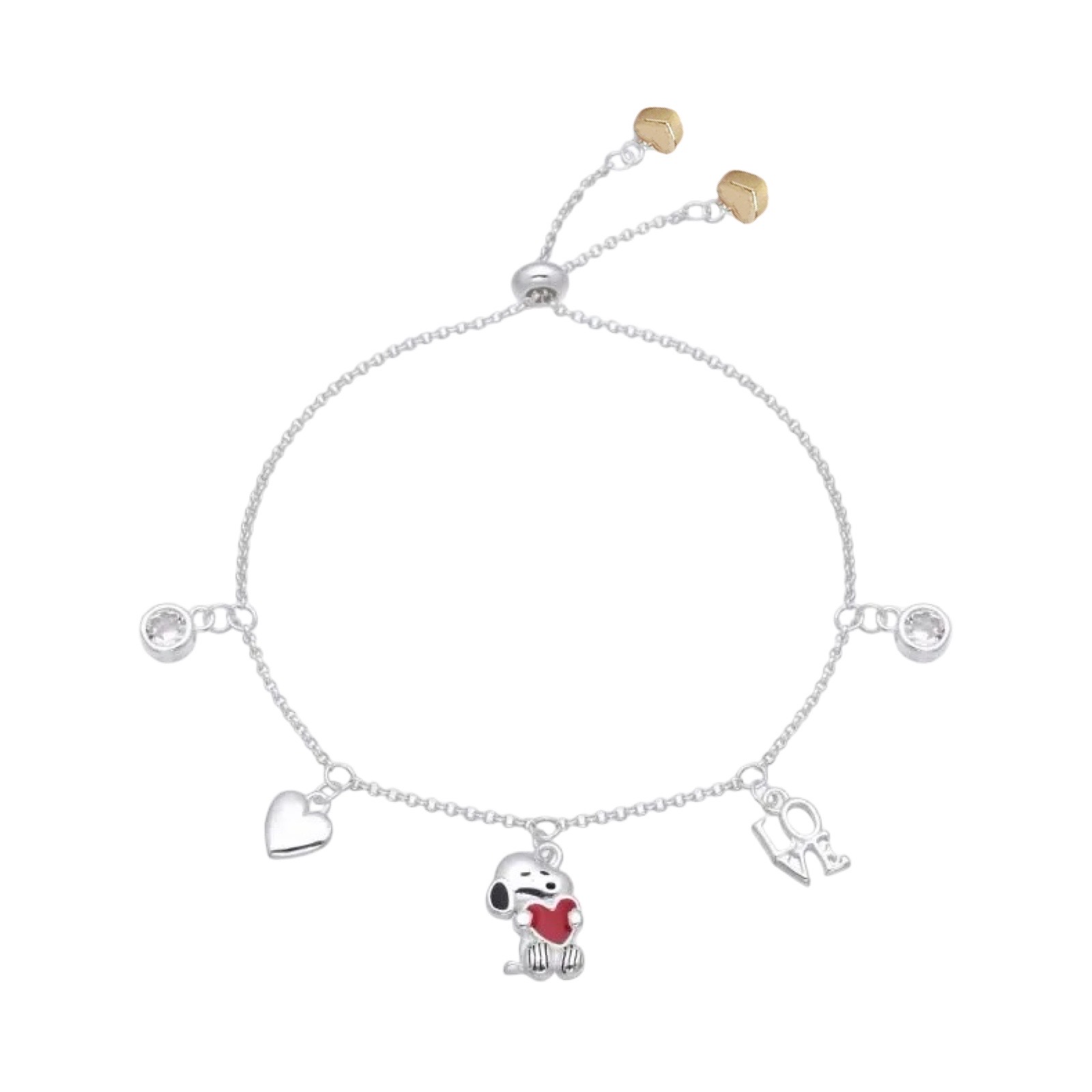 Snoopy Pulsera “Love” ajustable tono plateado con dijes a color