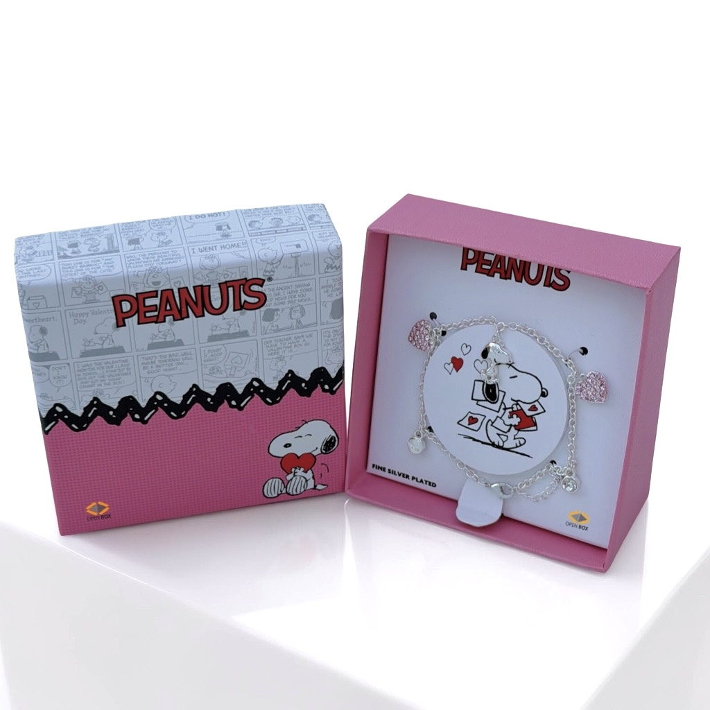 / Snoopy Pulsera tipo charm en tono plateado con dijes